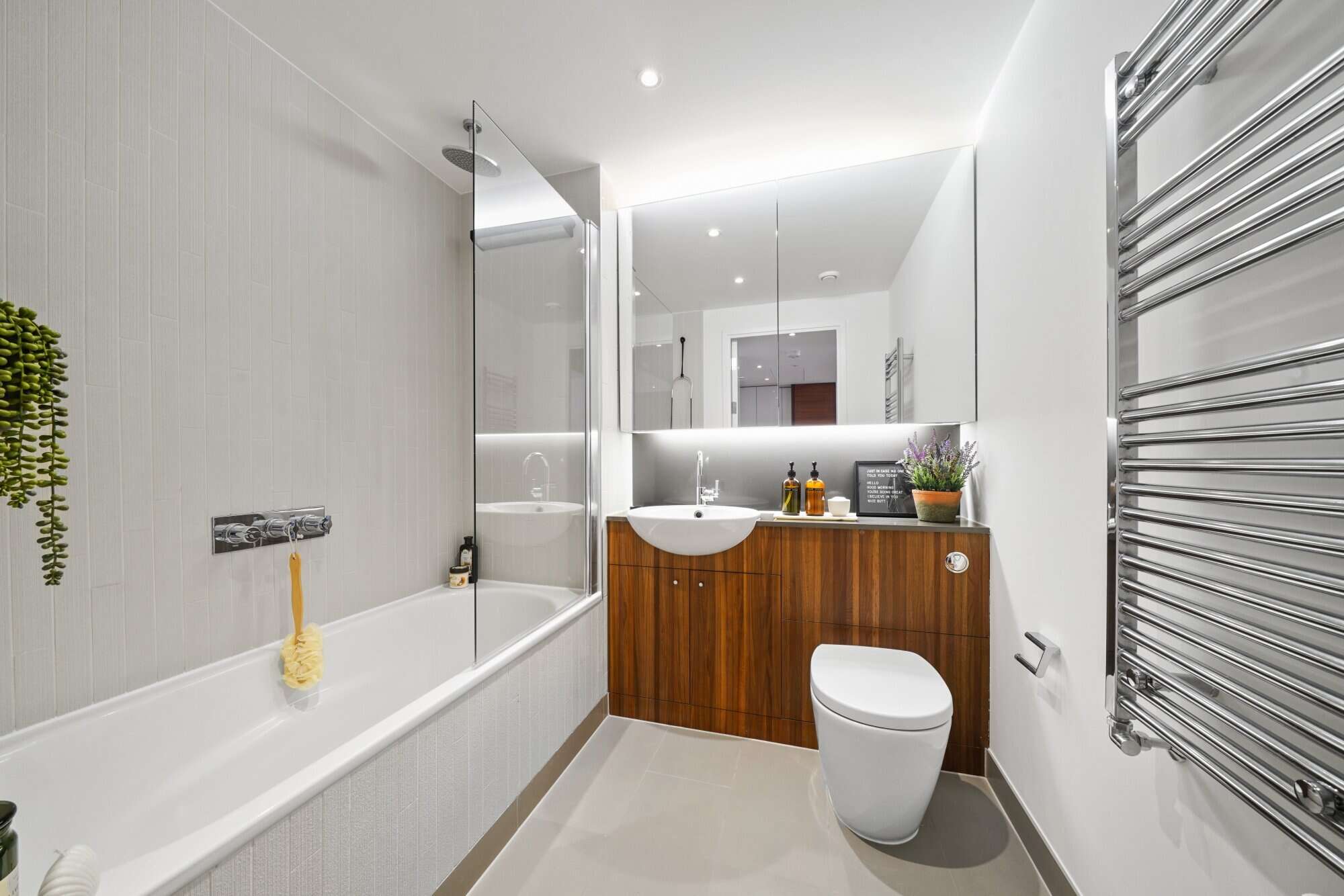 A one bedroom home with a private balcony, in the heart of East Village. Located on the doorstep of Queen Elizabeth Olympic Park, next door to Westfield shopping centre and less than a 10 minute walk to Stratford stations.